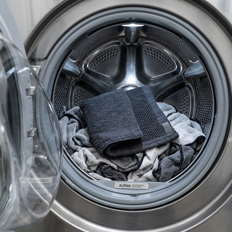 Toss the Alpha Sponge in the washing machine with your regular load. It is fully washer-friendly. This resets the cotton fibers and sterilizes the netting.